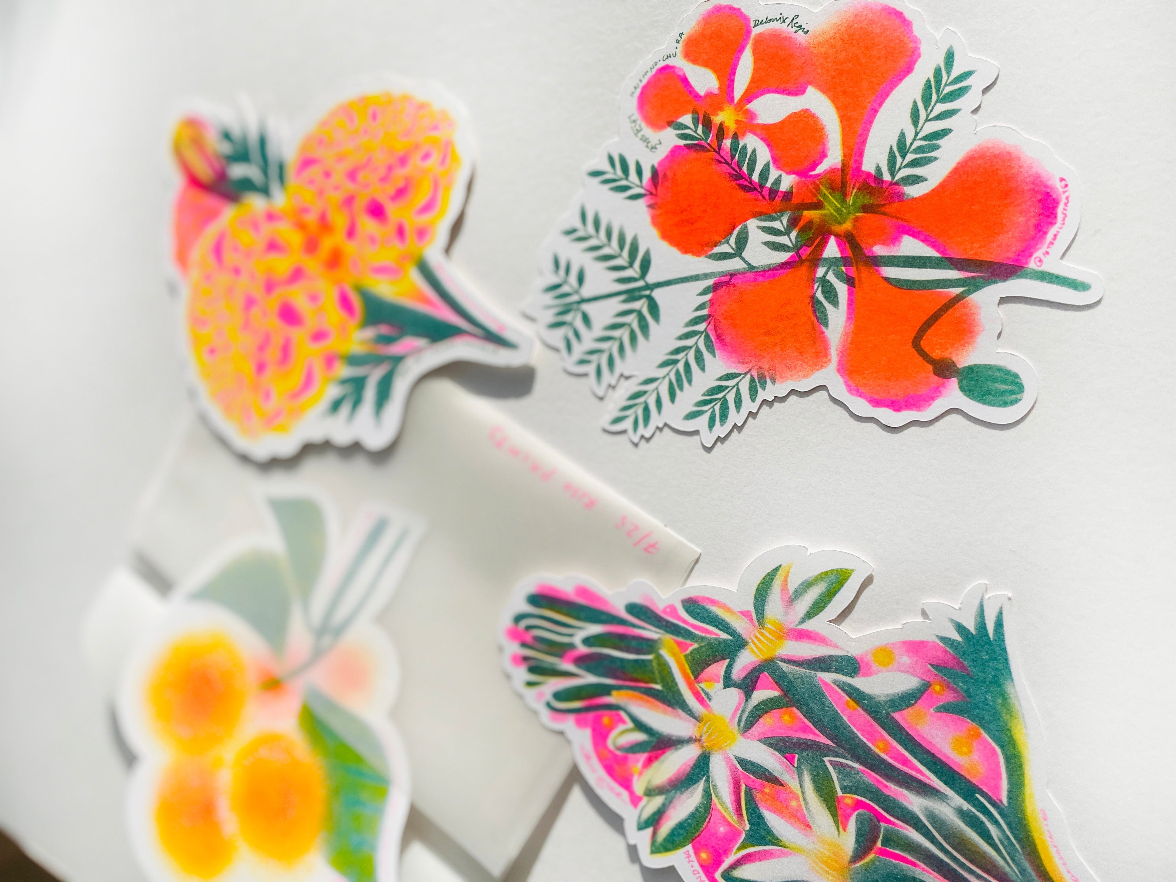 A pack of Krishnochura, Marigold, Kodom, & Rajanigandha in riso print in a lovely transluscent envelope. This is the Benglar Bouquet that will be vivid and bright through time. Give someone the gift of flowers or keep it in your corner for some moments of joy!