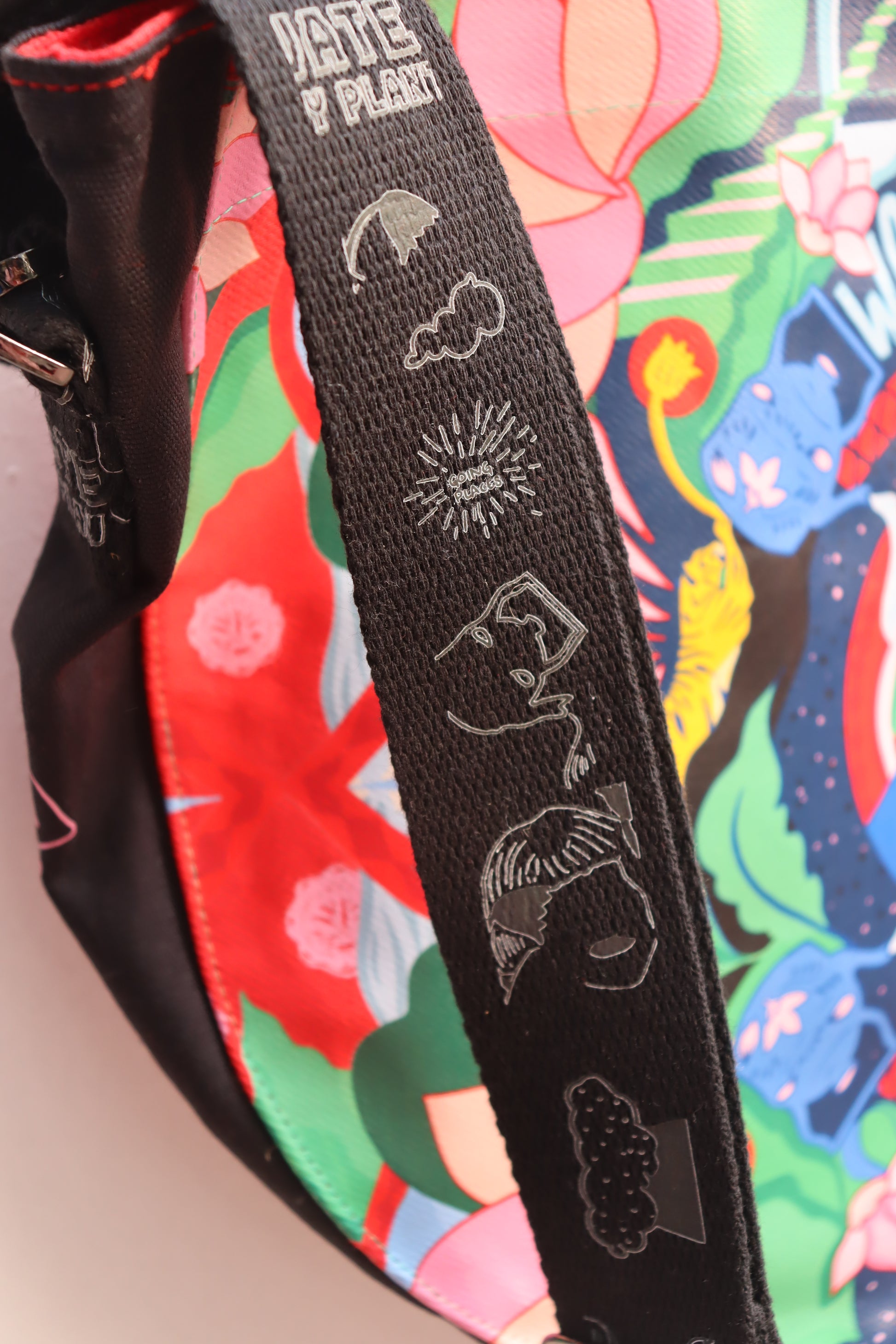 -Long illustrated strap that is adjustable